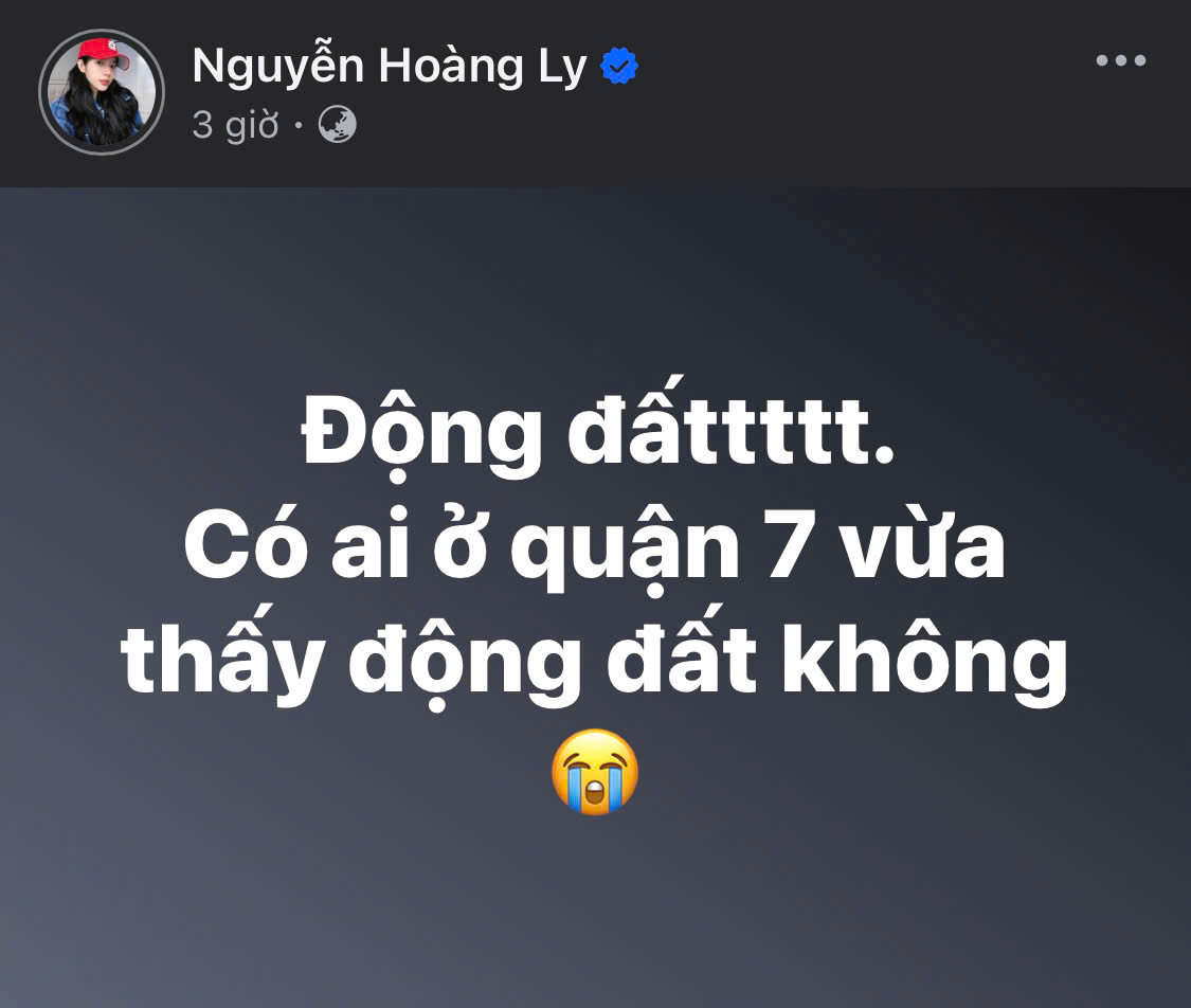 Ở TP.HCM, "chị đẹp" Dương Hoàng Yến cũng đăng tải video đèn trần nhà cô rung lắc, người thì "chóng mặt, xây xẩm mặt mày". Ban đầu, "cô giáo Yến" tưởng mình bị tiền đình sau khi đi tập cho Chị Đẹp Concert. Nhiều fan để lại bình luận thể hiện sự lo lắng và mong cô an toàn khi ở một mình.
