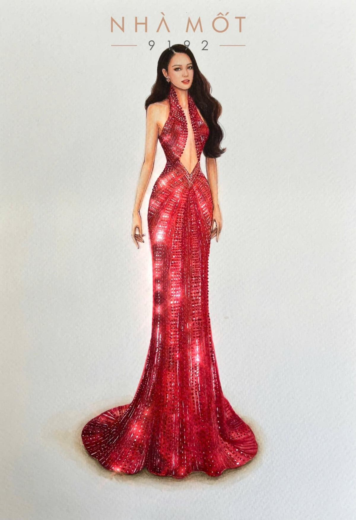 Mới đây, nàng hậu đã khoe trên trang cá nhân thiết kế dạ hội sẽ được cô mặc trong đêm Chung kết của cuộc thi. Đây là một thiết kế mang sắc đỏ, được đính đá lấp lánh nổi bật. Thiết kế được nhận xét là giúp Á hậu Bùi Khánh Linh khoe trọn vẹn lợi thế về hình thể, với chiều cao 1m77.