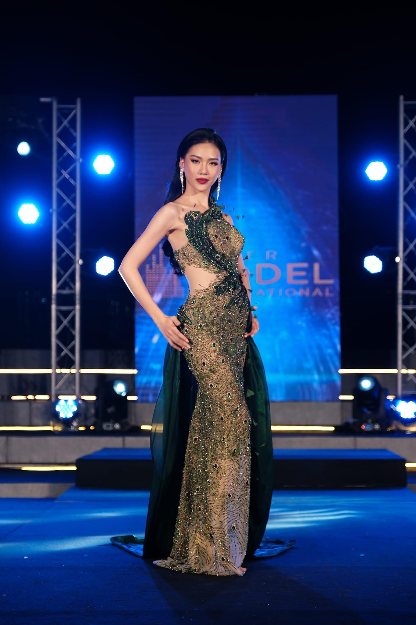 | Bùi Quỳnh Hoa trình diễn trang phục áo tắm và dạ hội. Ảnh: Phúc Nguyễn. |