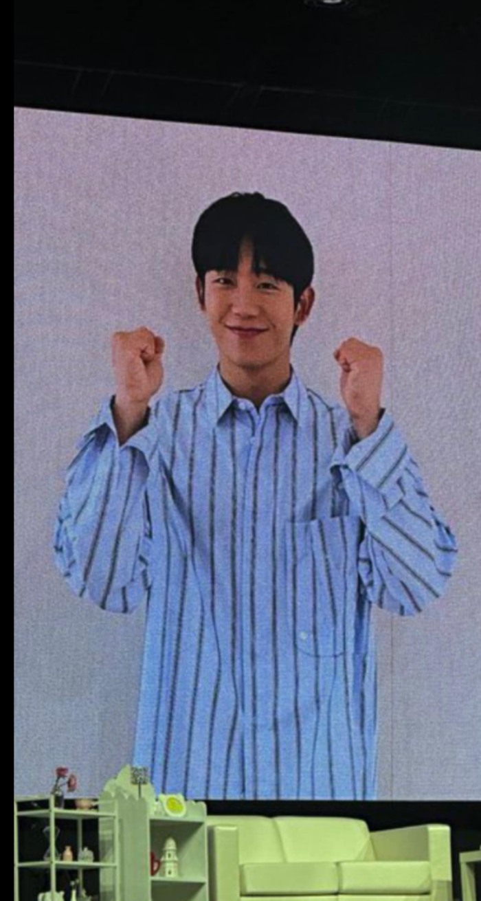 Tuy nhiên, giây phút khiến người hâm mộ bùng nổ hơn cả là khoảnh khắc video lời nhắn bí mật của 2 nam diễn viên được chiếu trên màn hình lớn. Đặc biệt, chủ nhân của 1 trong 2 video đó chính là Byeon Woo Seok - người bạn diễn vô cùng ăn ý với Kim Hye Yoon trong Lovely Runner (Cõng anh mà chạy).