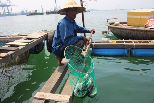 Riêng cá bớp thì từ chiều hôm qua bỏ ăn, đổi màu rồi đến sáng nay chết hàng loạt, thất thu khoảng trên 5 tỷ đồng. Tại vùng biển ở thôn Sơn Trà (xã Bình Đông) có khoảng 30 hộ nuôi cá bớp lồng bè cũng cùng chung số phận.