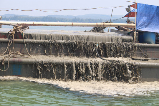 Theo ghi nhận của Tiền Phong, nơi các hộ dân nuôi cá chỉ cách vùng biển Dung Quất khoảng 100m và cách các doanh nghiệp hút cát vài chục mét. Các hộ nuôi cá bớp ở đây nhận định: Nguyên nhân dẫn đến cá chết là do nước bị ô nhiễm, có thể do các doanh nghiệp hút cát xả bùn trong khu vực gần chỗ nuôi cá.