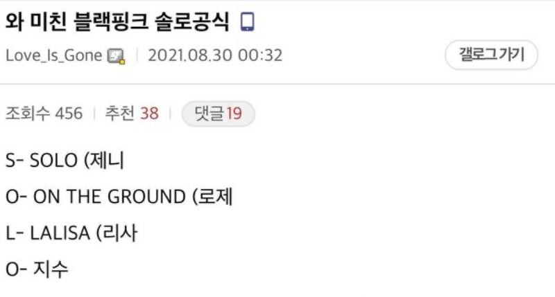 Nếu lấy tên các chữ cái đầu trong tên các bài hát debut solo của các thành viên BLACKPINK từ trước đến này, ghép lại có thể tạo thành chữ SOL… chữ cuối cùng rất có thể là chữ O, dành cho tên ca khúc debut solo của Jisoo.