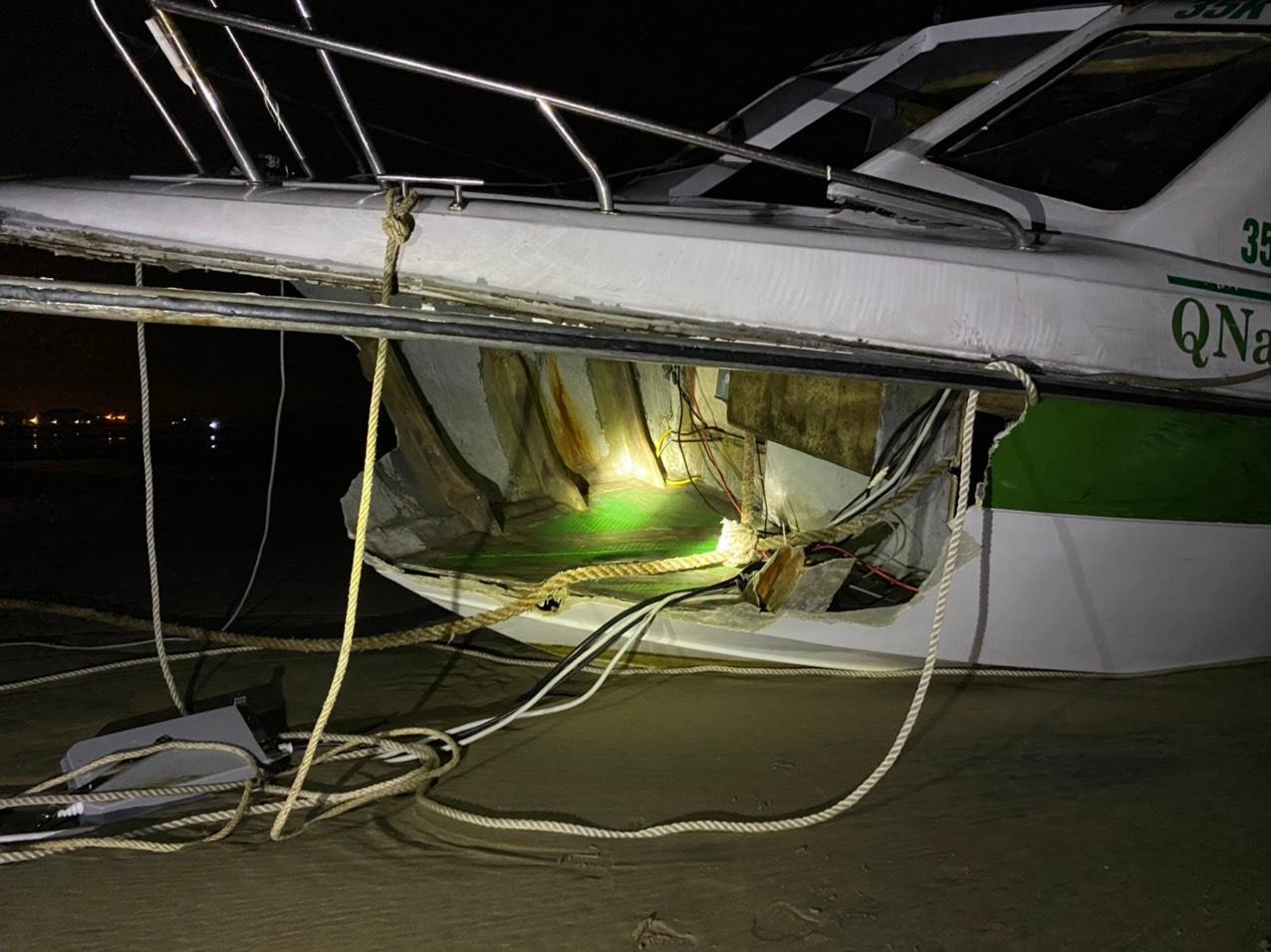 Tại hiện trường, chiếc ca nô biển hiệu QNa 1152 bị vỡ mũi, trôi tự do sau đó dạt vào cồn cát. Lực lượng chức năng đang triển khai các phương án để đưa chiếc ca nô này vào bờ.