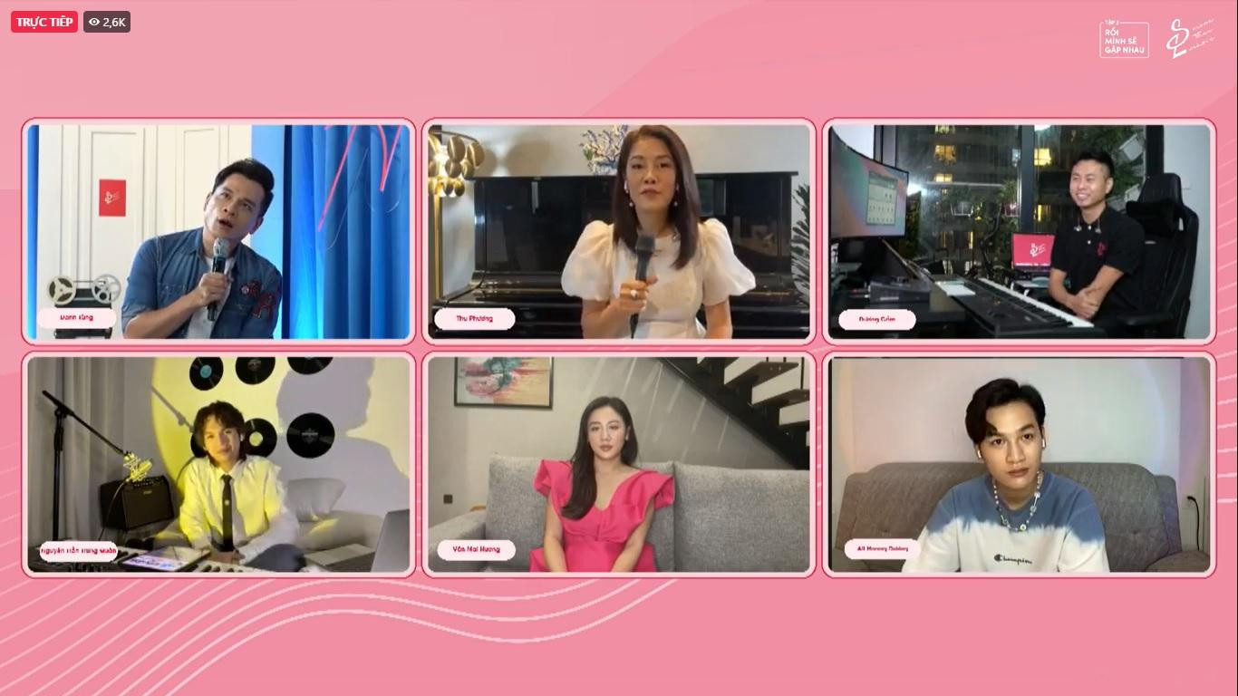 | Ca sĩ Thu Phương hòa ca cùng các ca sĩ trong nước trong đêm nhạc 12/8. Ảnh chụp màn hình |