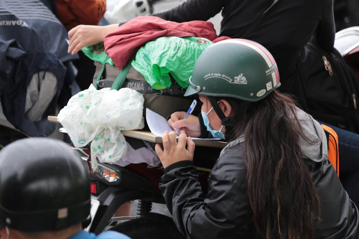 Lực lượng chức năng phát giấy khảo sát để người dân ghi thông tin cá nhân, nguyện vọng về quê, sau đó sẽ tập hợp, gửi các sở, ngành của thành phố để tìm phương án giải quyết.