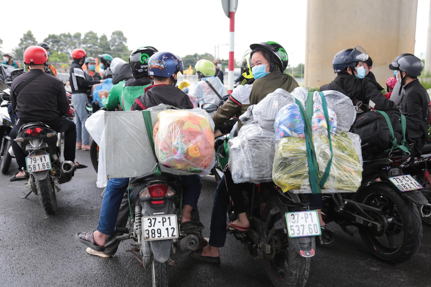 Ngày 30/9, sau khi thông tin TPHCM thực hiện nới lỏng một số biện pháp phòng, chống dịch COVID-19 được công bố, rất đông người dân tổ chức về quê bằng xe máy.