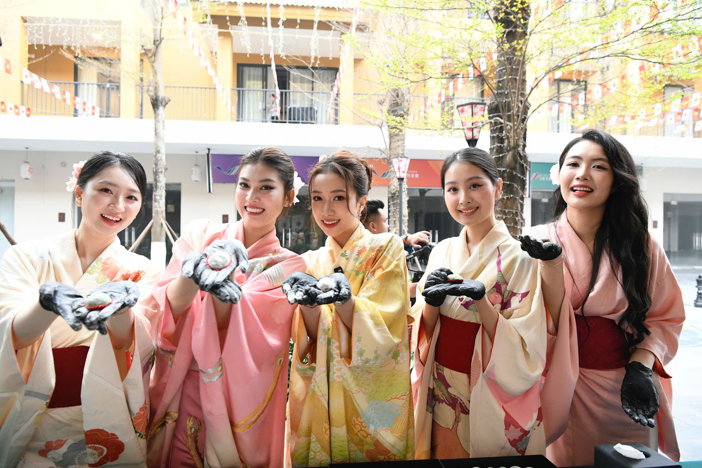 | Các Á hậu, Người đẹp hào hứng khi được nghe giới thiệu về nguồn gốc bánh mochi cũng như ý nghĩa của chúng trong đời sống văn hóa Nhật Bản. |