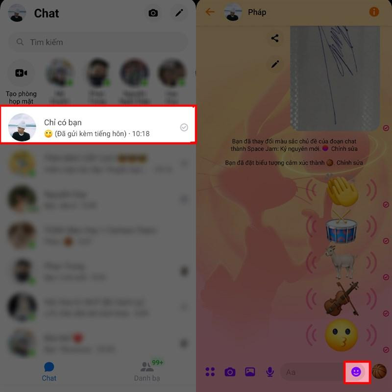 Bước 2: Sau khi cập nhật hoàn tất bạn hãy vào lại Facebook Messenger và chọn vào cuộc trò chuyện mà bạn muốn nhắn tin rồi chọn vào biểu tượng mặt cười phía sau khung nhập tin nhắn để đến bước tiếp theo.