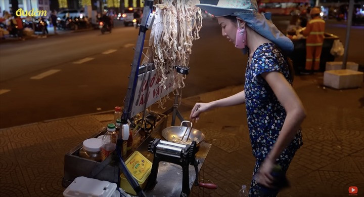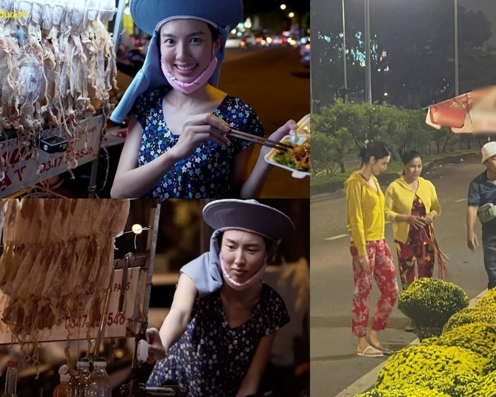 Hình ảnh nàng hậu mặc bộ đồ hoa màu xanh tím than, đội mũ vải và cần mẫn bán mực khô lề đường từng khiến netizen xôn xao. Ngoài ra, Hoa hậu Thùy Tiên còn khoe đồ bộ một lần nữa khi nhập vai cô gái đi bán hoa cảnh đón Tết.