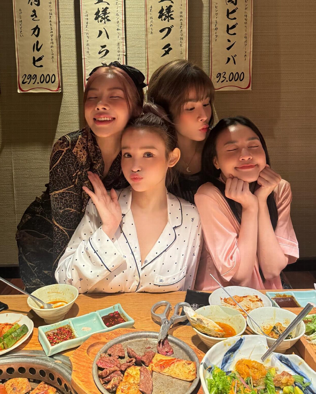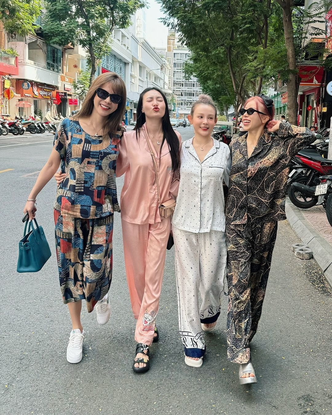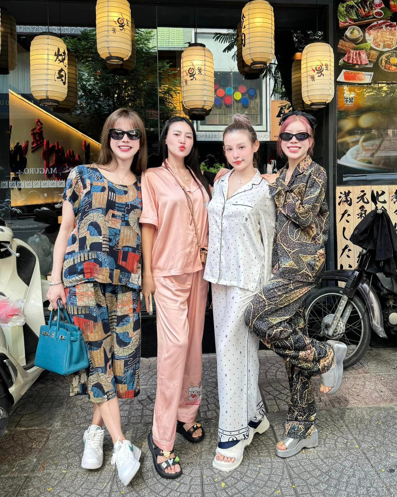 Bốn chị đẹp Huyền Baby, Lan Ngọc và Trang Pháp, Diệp Lâm Anh đã rủ nhau đi ăn hàng trong những bộ đồ mặc nhà. Nếu như Huyền Baby chọn đồ ngủ từ nhà mốt Victoria's Secret thì Diệp Lâm Anh mượn luôn đồ của bà ngoại để mặc.