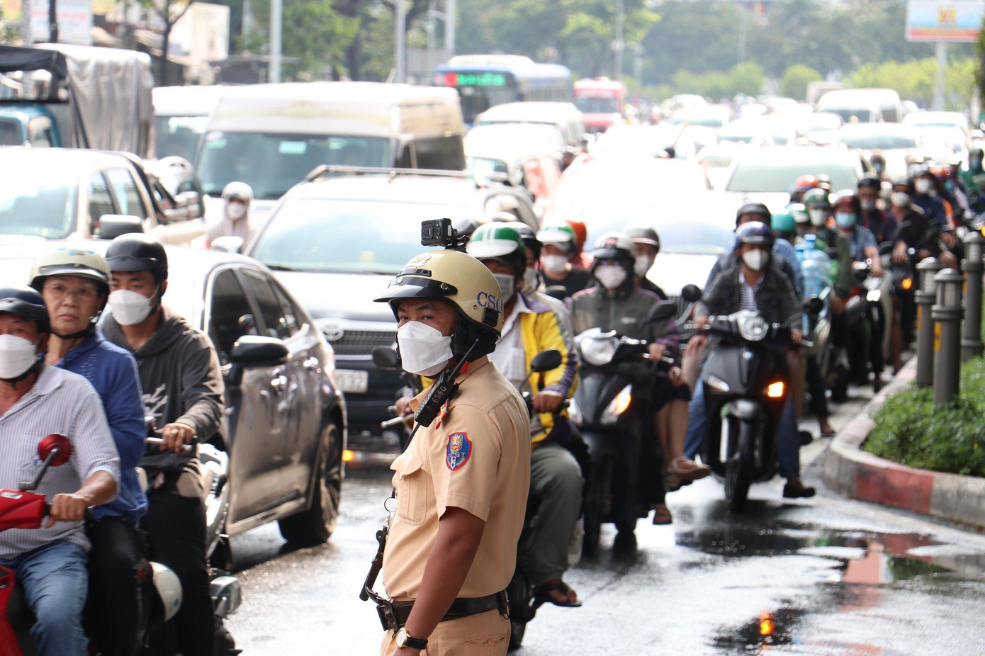 Trong khi đó, tại Quốc lộ 1 (hướng về các tỉnh miền Tây Nam Bộ), từ chiều 31/8 lưu lượng phương tiện tăng vọt. Tại các điểm giao cắt xảy ra tình trạng ùn ứ kéo dài. Lực lượng chức năng đã nhanh chóng có mặt điều tiết giao thông tại các điểm "nóng".