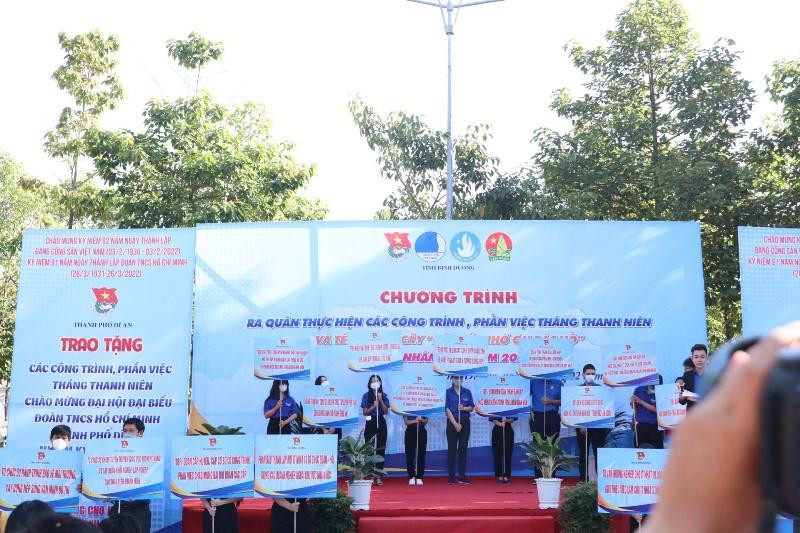 Trong khuôn khổ Chương tình, các đại biểu đã tham gia trồng cây tại Sân vận động phường Dĩ An; thực hiện công trình đổi rác thải lấy quà tặng, trao căn phòng mơ ước cho TNCN, ra quân dọn dẹp các tuyến đường và tuyên truyền phòng, chống dịch bệnh COVID-19 trong tình hình mới; thăm, tặng quà mẹ Việt Nam Anh hùng Phan Thị Cai, tại khu phố Tân Phước phường Tân Bình, TP Dĩ An (99 tuổi).
