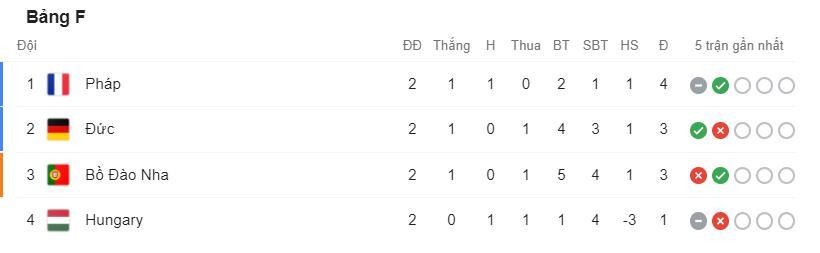 - Bồ Đào Nha sẽ đi tiếp nếu không để thua Pháp. Họ sẽ đứng đầu bảng nếu thắng, còn Đức không thể thắng Hungary. Bồ Đào Nha sẽ đứng thứ 4 nếu thua và Đức cũng thua.