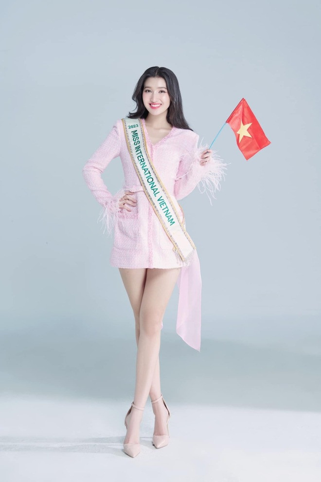 Khi bay sang Nhật Bản để gia nhập đường đua Miss International 2023, Phương Nhi đã chọn bộ váy liền màu hồng ngọt ngào rất hợp với vẻ đẹp trong trẻo của cô. Thiết kế ôm sát, siêu ngắn giúp tôn lên vóc dáng đẹp và nước da mịn màng của nàng hậu, tay áo dài cũng giúp Phương Nhi không bị lạnh khi sang Nhật vào thời điểm này.