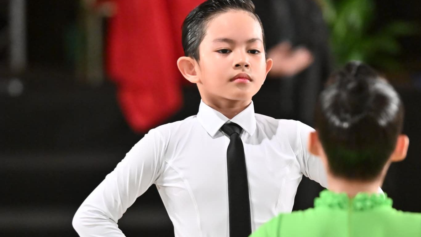 | Con trai Khánh Thi thể hiện niềm yêu thích dancesport giống với bố mẹ. |