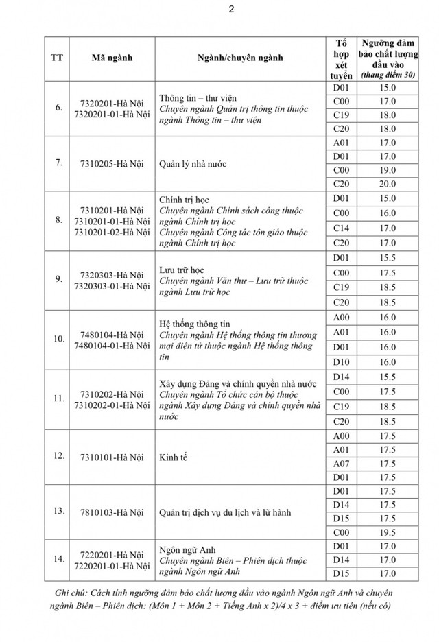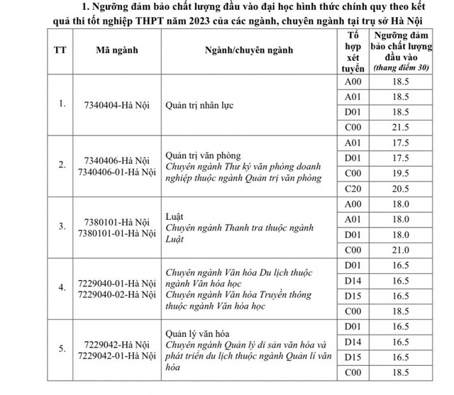 Học viện Hành chính Quốc gia cũng vừa công bố điểm sàn xét tuyển đại học chính quy năm 2023 theo kết quả thi tốt nghiệp THPT 2023.