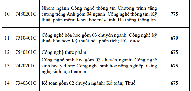 Với phương thức ưu tiên xét tuyển thẳng (PT2A), ngành Khoa học máy tính (chương trình tiên tiến) lấy điểm cao nhất với 9,8/10. Đứng vị trí thứ 2 là ngành Khoa học dữ liệu 9,7. Các ngành còn lại lấy điểm chuẩn từ 8,5 trở lên.