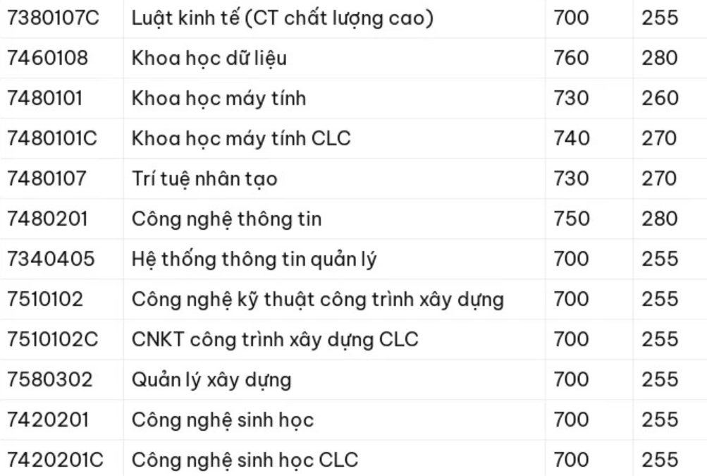 Điểm chuẩn theo phương thức ưu tiên xét tuyển thẳng và ưu tiên xét tuyển ở ngành khoa học máy tính có điểm chuẩn đầu vào cao nhất với 86,7 điểm (chương trình tiêu chuẩn) và 86,2 (chương trình tiếng Anh).