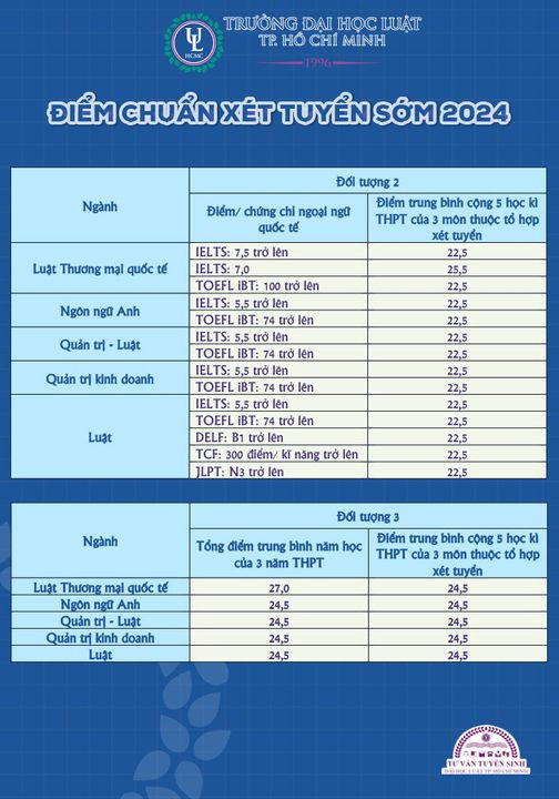 Theo thông báo này, ngành Luật Thương mại Quốc tế yêu cầu IELTS 7.5 trở lên dành cho đối tượng 2.