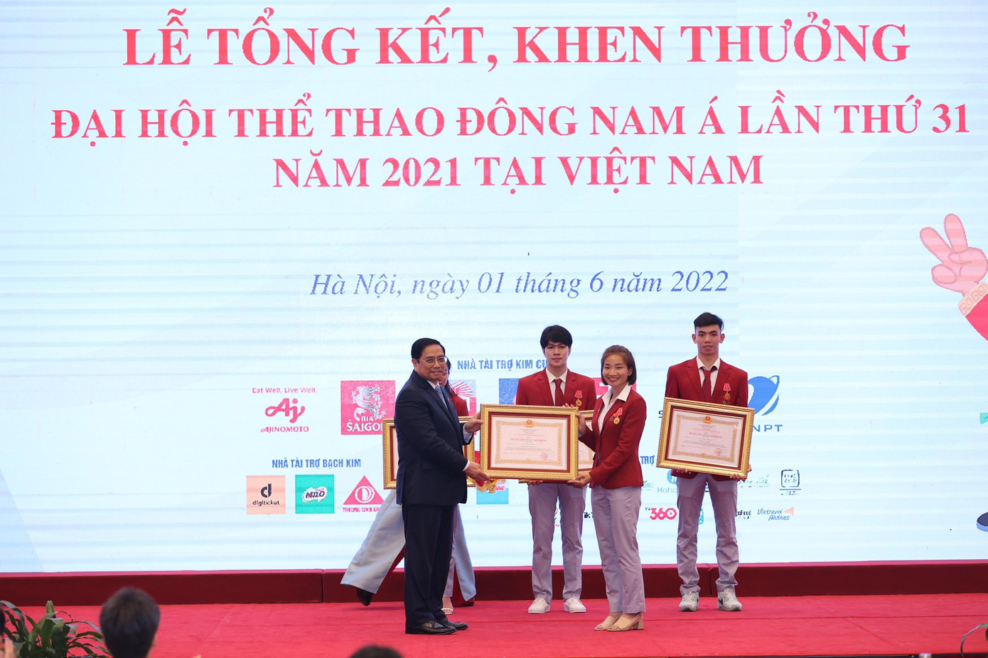 Trong buổi lễ, Thủ tướng Phạm Minh Chính và Phó Thủ tướng Vũ Đức Đam đã trao tặng 4 Huân chương Lao động hạng Nhì cho 4 VĐV, Huân chương Lao động hạng Ba cho 2 tập thể và 19 cá nhân cùng bằng khen cho 305 cá nhân xuất sắc khác.