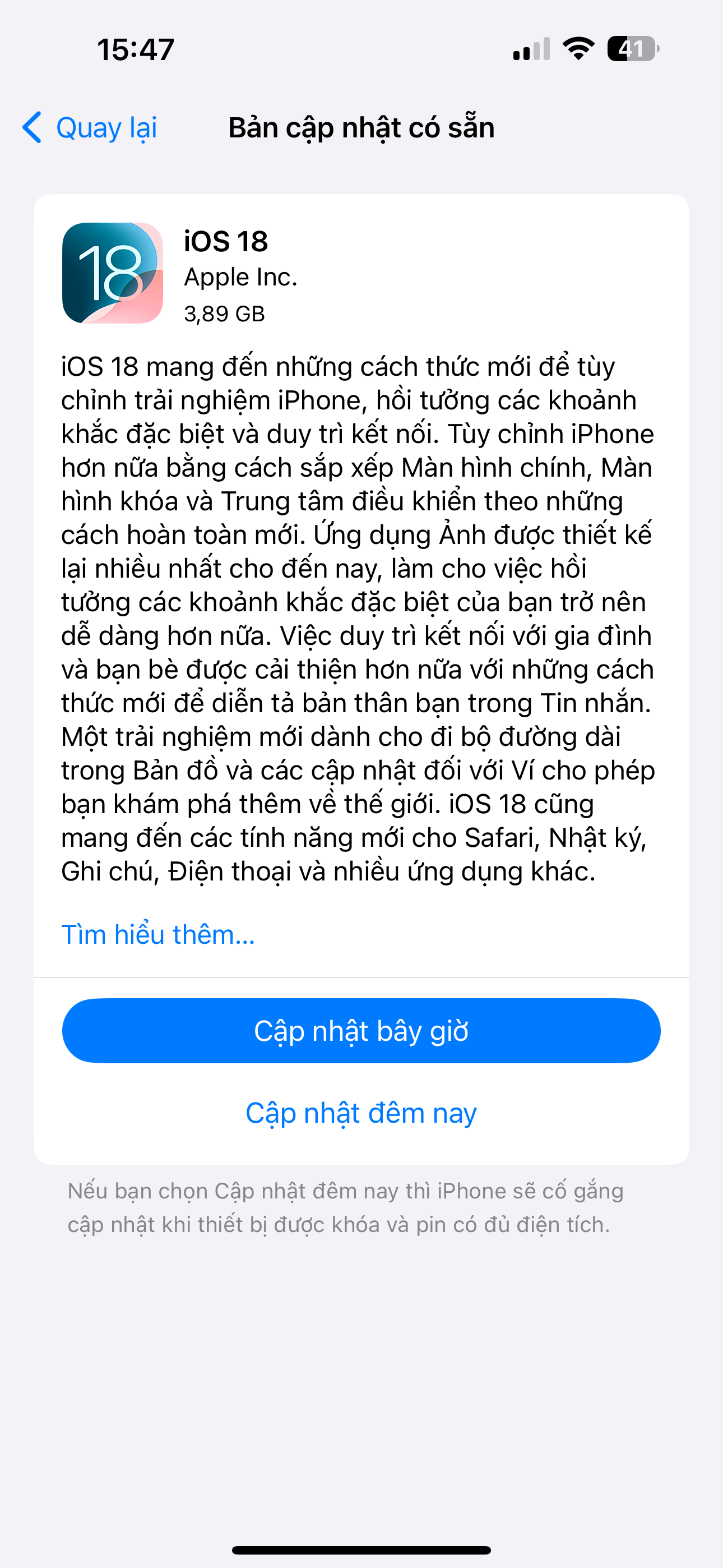 Hiện tại, phiên bản iOS 18 chính thức đã được Apple gửi đến người dùng iPhone. Bản cập nhật này bao gồm các tính năng tùy chỉnh Màn hình chính mới, ứng dụng Ảnh được thiết kế lại hoàn toàn và nhiều tính năng khác.