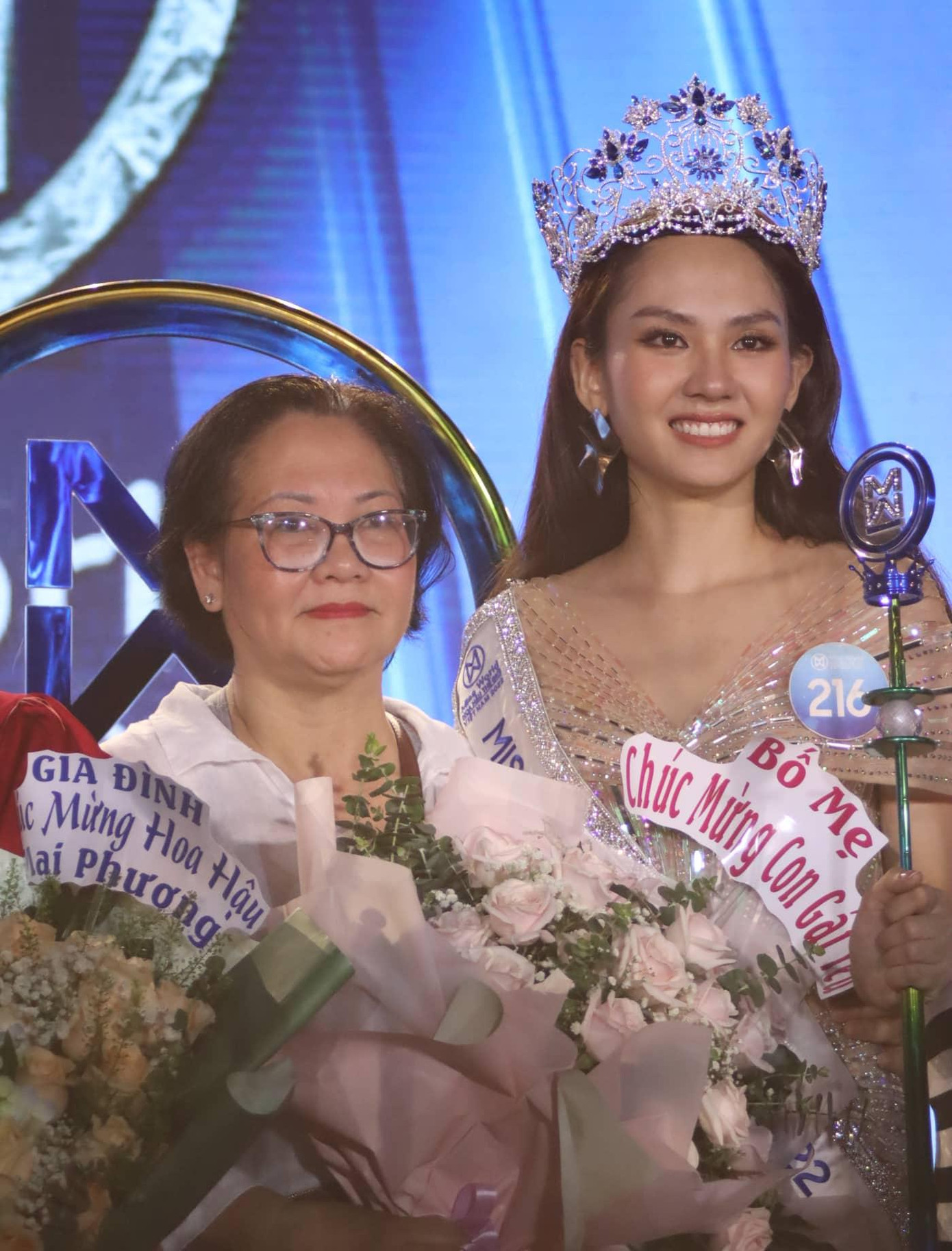 Khi được hỏi về việc Mai Phương trở thành tân Hoa hậu, liên tục xuất hiện trước công chúng sẽ khó tránh khỏi thị phi, mẹ nàng hậu thể hiện sự tin tưởng với con gái: "Gia đình tôi không giàu nhưng giữ lễ giáo, tôi là người theo sát chặng đường phát triển của Phương từ bé cho đến lớn. Các con đã được dạy dỗ cẩn thận từ bé và nó đã trở thành nếp sống của Mai Phương".