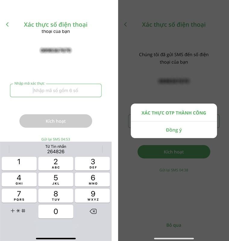 Bước 3: Bạn nhập mã xác thực OTP 6 số, nhấn Kích hoạt để tiến hành xác thực số điện thoại.