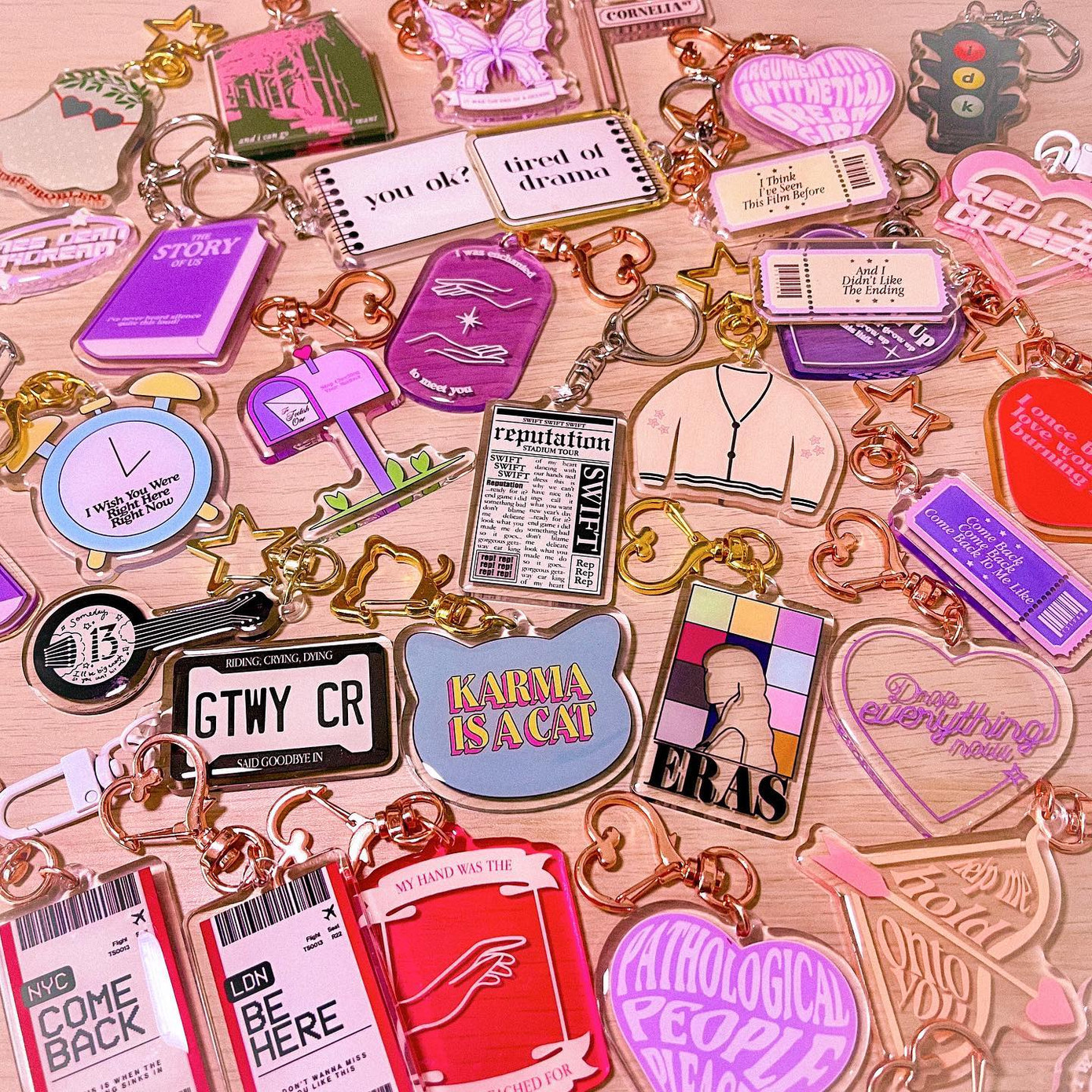 Nhắc đến những chuyến du lịch kết hợp "đu" concert, các fan hiếm khi bỏ qua việc "săn" các vật phẩm liên quan đến idol và sự kiện. Để lưu giữ kỉ niệm khi đi xem The Eras Tour tại Singapore, người hâm mộ có thể dễ dàng tìm mua móc khóa, vòng tay có in tên hoặc các bài hát nổi tiếng của Taylor Swift.