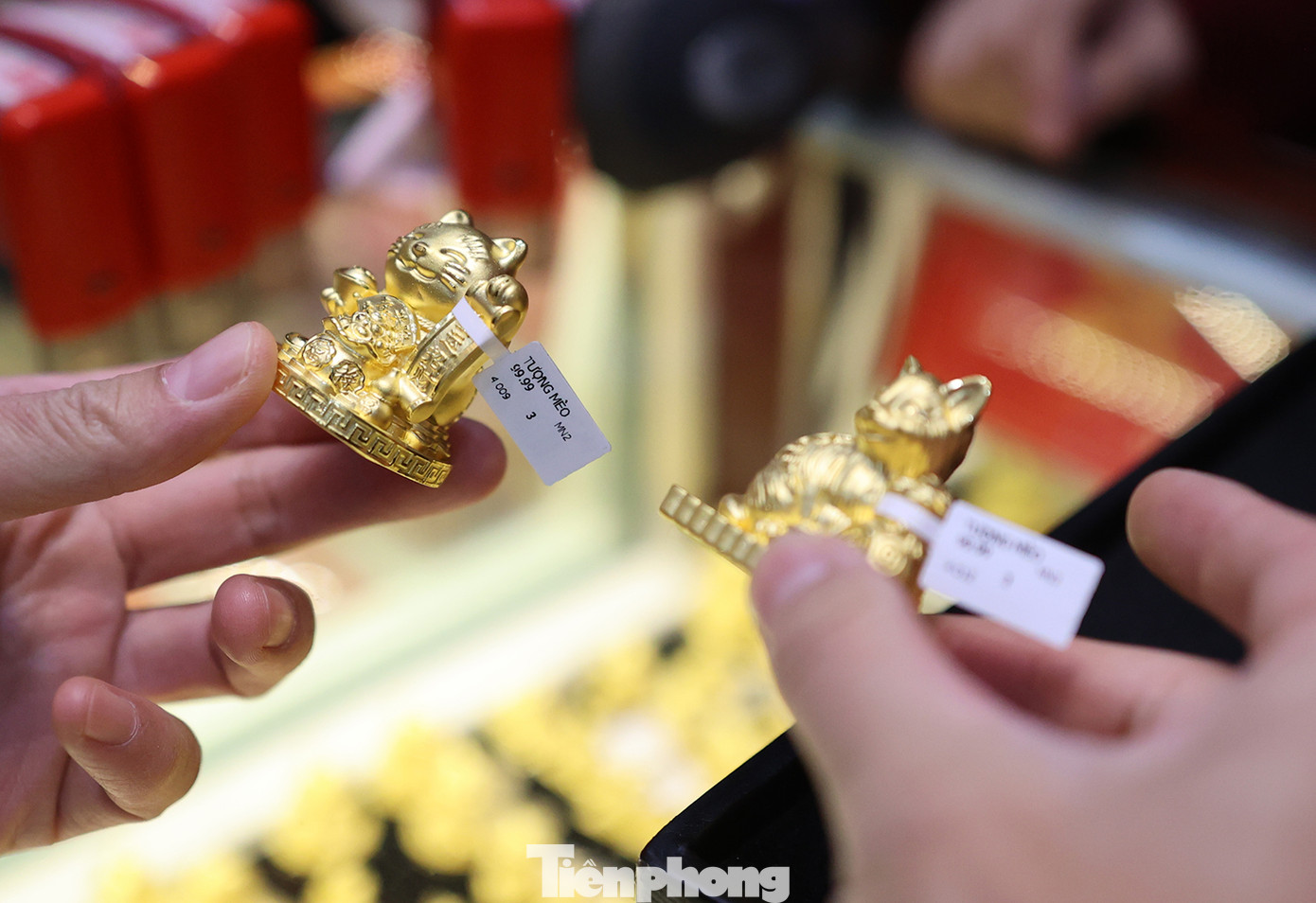 | Từ sáng sớm ngày vía Thần Tài, nhiều cửa hàng vàng ở Hà Nội đã mở cửa đón khách. |