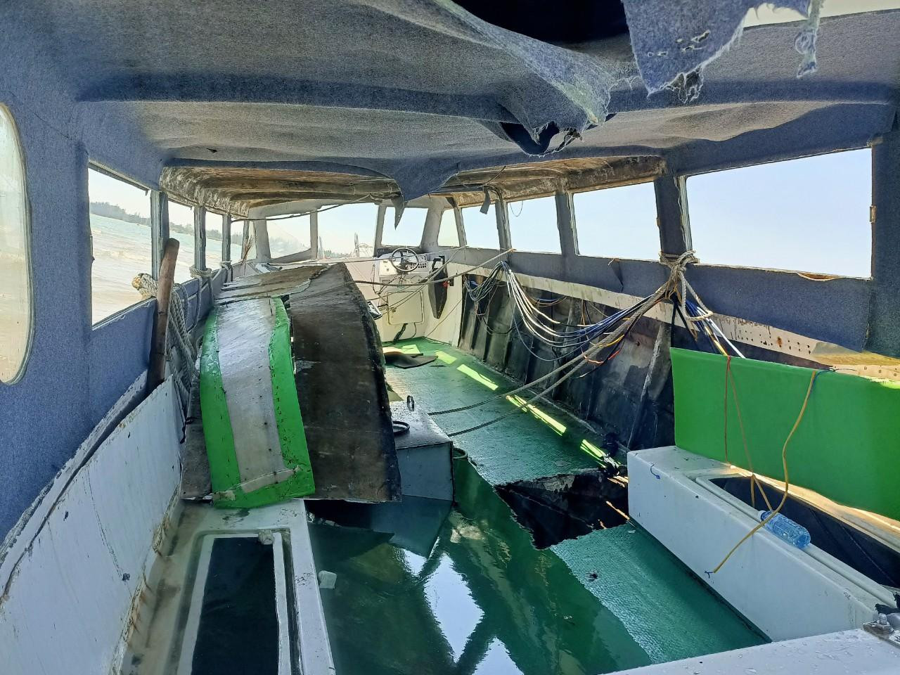 | Toàn bộ cửa kính hai bên hông và phía trước ca nô vỡ nát. |