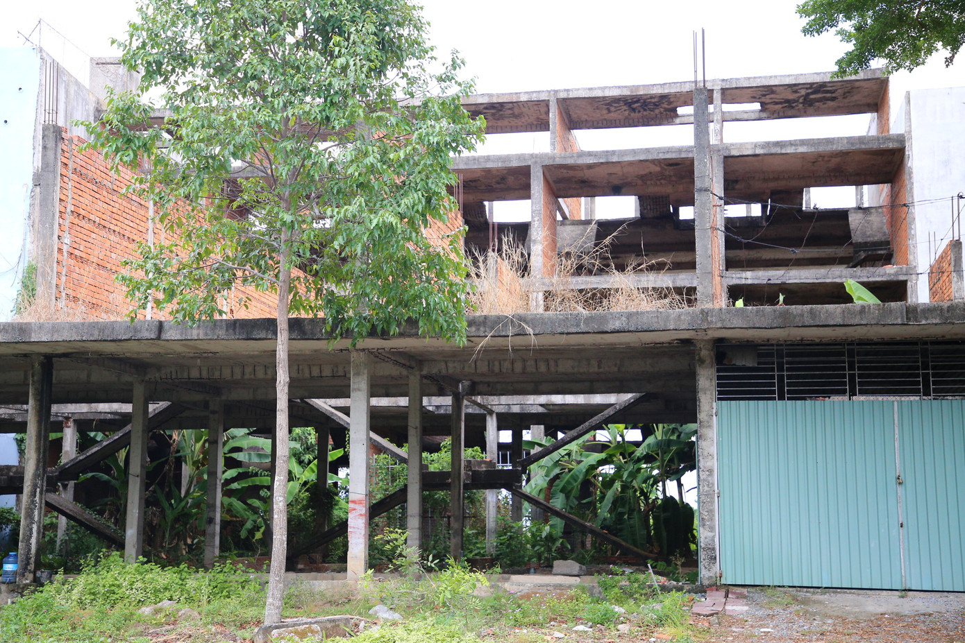 | Ghi nhận của phóng viên ngày 9/5, tại khu dân cư 586 (thuộc khu đô thị Nam Cần Thơ), hàng loạt biệt thự, nhà phố… chủ đầu tư chỉ xây dựng phần thô rồi nằm bất động trong thời gian dài khiến cỏ mọc um tùm. |
