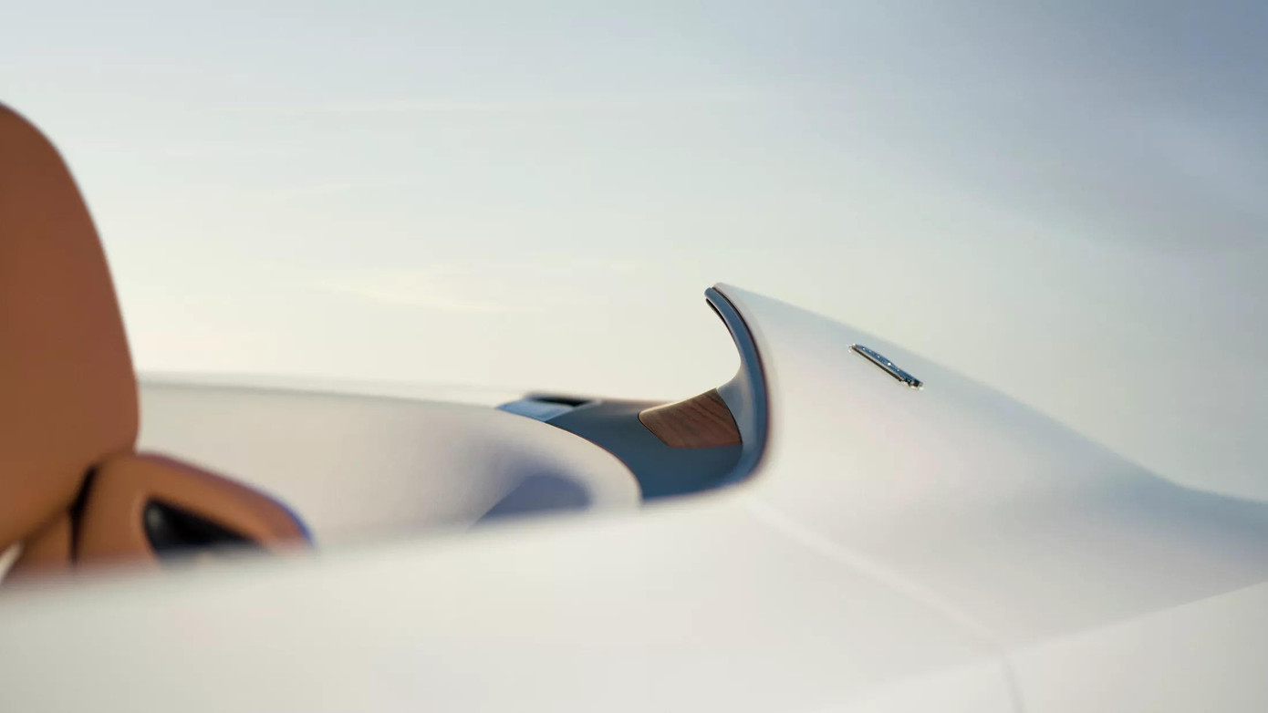 Tinh thần đó thể hiện rõ nhất ở màu sơn ngoại thất trắng dịu và các điểm nhấn trang trí bằng gỗ màu đất ấm áp. Lớp sơn này được tiết lộ có chứa các hạt nhôm và thủy tinh khiến thân xe lấp lánh dưới ánh sáng.