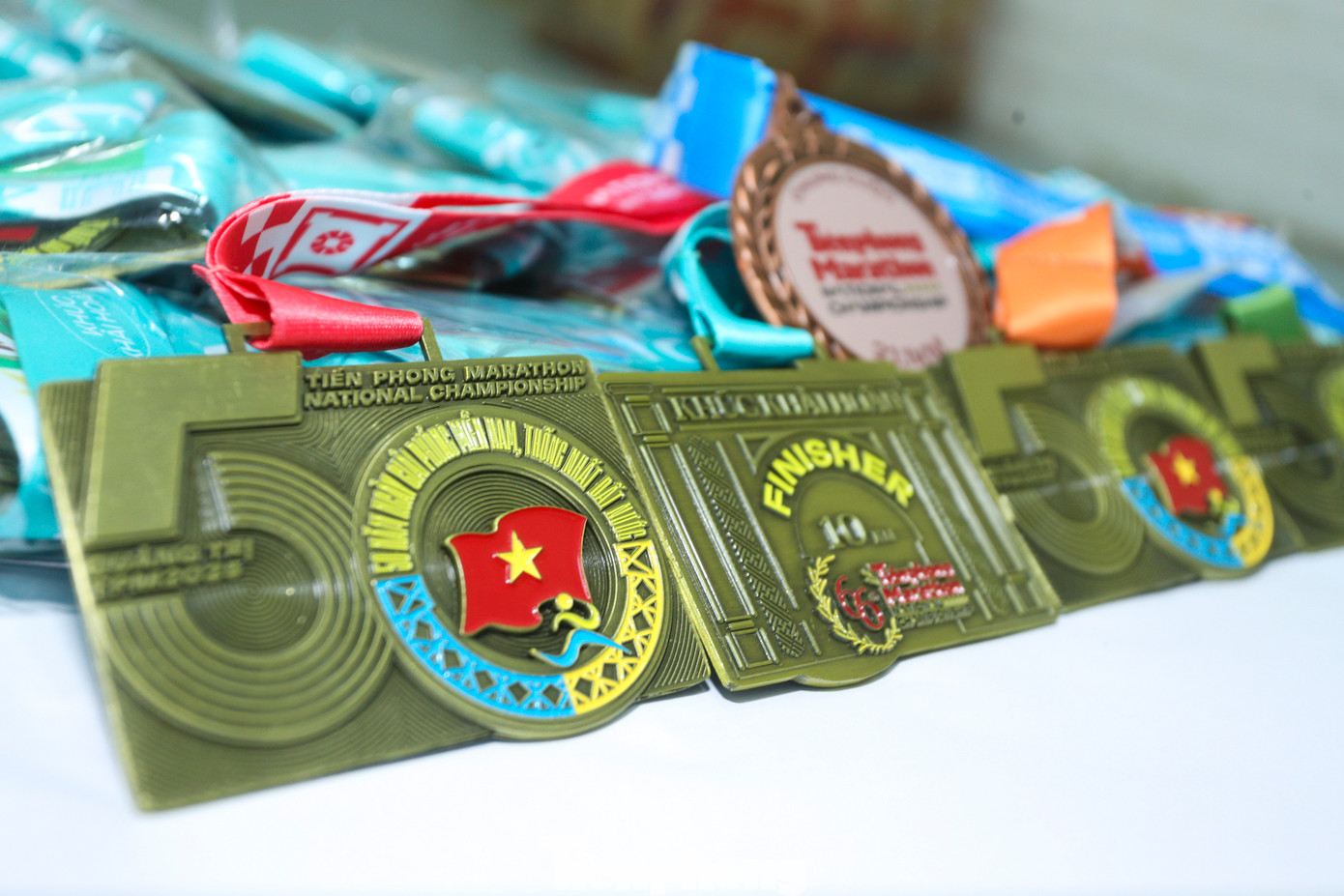 Điều các vận động viên mong đợi nhất khi tham gia Tiền Phong Marathon 2025 chính là tấm Huy chương hoàn thành cự ly được thiết kế 3D với thông điệp “Khúc khải hoàn” truyền cảm hứng từ đại lễ kỷ niệm 50 năm ngày giải phóng miền Nam, thống nhất đất nước.
