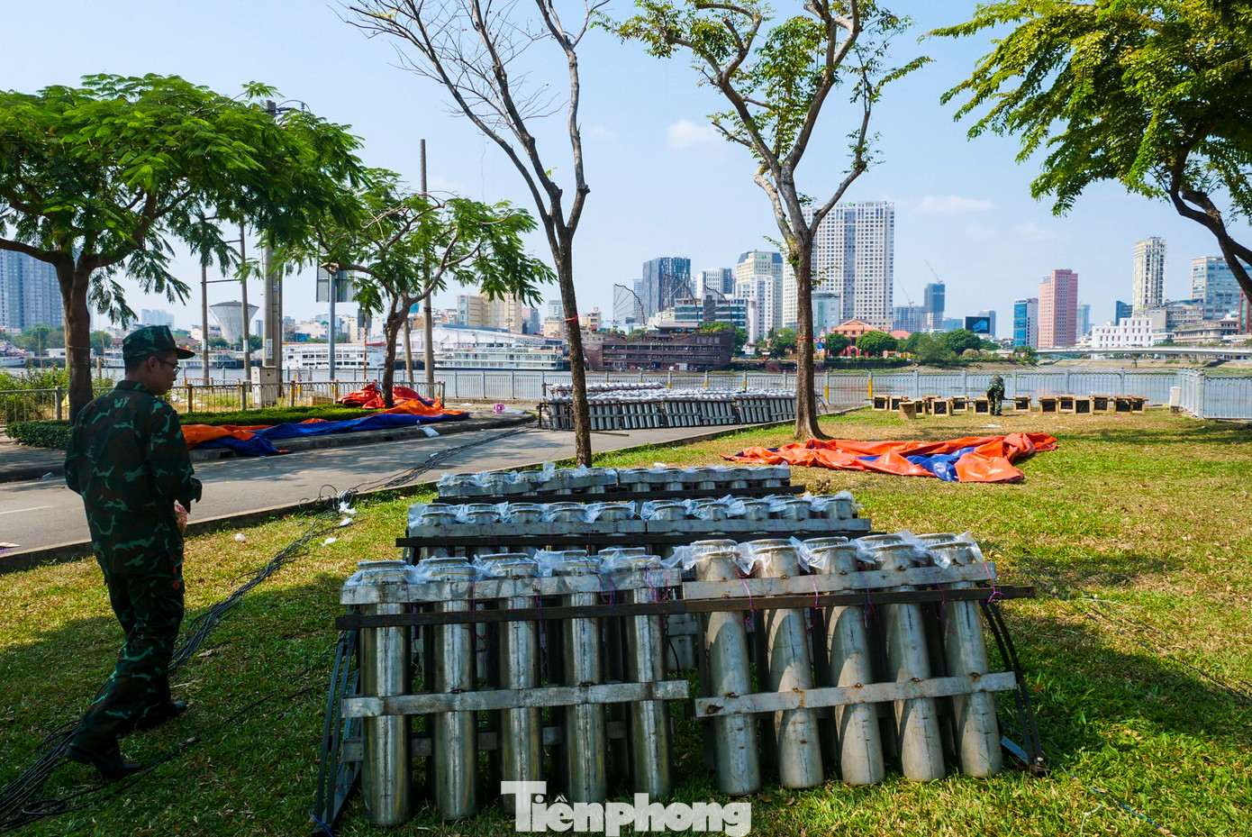 | Sáng 9/2 (30 tháng Chạp) tại công viên hầm vượt sông Sài Gòn (TP Thủ Đức), 1.500 quả pháo tầm cao cùng 30 giàn pháo hoa tầm thấp đã được mang ra để dựng trận địa. |