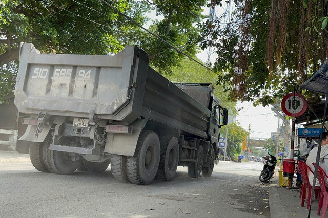 Ở quận 12, sáng 30-9, xe ben này chở đầy đá lưu thông trên đường Trương Thị Hoa (giới hạn trọng tải 10 tấn)