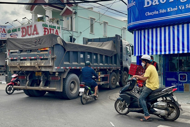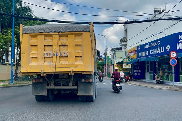 Xe ben chạy trên đường An Lộc, quận 12 - tuyến đường giới hạn trọng tải 10 tấn
