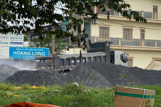 Xe ben đổ đá tại cơ sở vật liệu xây dựng Hoàng Long (đường Phan Văn Hớn, xã Xuân Thới Thượng, huyện Hóc Môn) sau khi lưu thông qua nhiều tuyến đường giới hạn trọng tải 10 tấn.