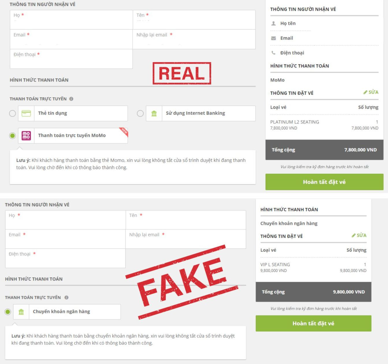 Để phân biệt website đặt vé thật và giả, người mua có thể dựa trên các dấu hiệu nhận biết dưới đây: