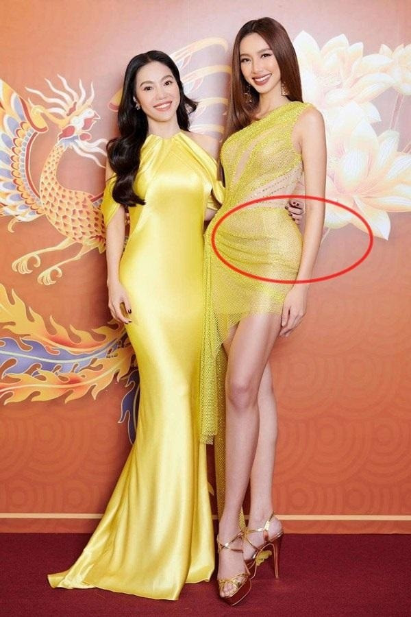 Thùy Tiên đâu có ngờ đèn flash lại khiến cô bị lộ lớp quần độn để giúp vòng 3 đẹp hơn. Sau sự cố này, Thùy Tiên đã lưu ý hơn đến chất liệu trang phục.