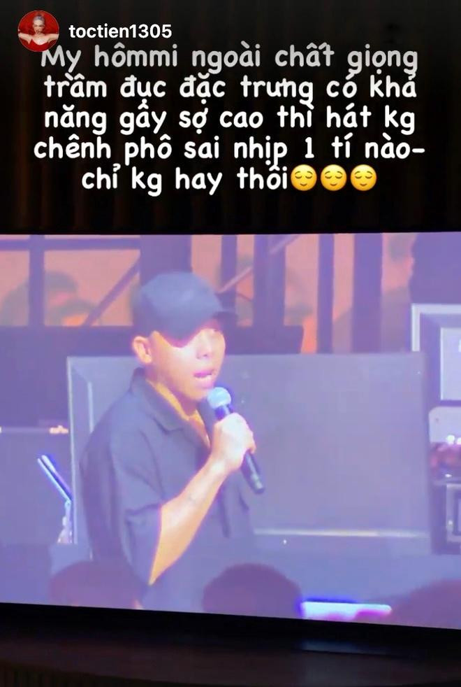 Hiếm khi chia sẻ lời ngọt ngào với chồng lên mạng xã hội, nhưng đã có lần Tóc Tiên khiến dân tình bất ngờ với chia sẻ của mình. Khi Touliver phát biểu tại chương trình Rap Việt, Tóc Tiên dành lời khen cho ông xã: “My homie ngoài chất giọng trầm đục đặc trưng, có khả năng gây sợ cao thì hát không chênh phô sai nhịp một tí nào”. Nhiều cư dân mạng cứ ngỡ lần này Hoàng Touliver được "mát mặt" nhưng không ngờ Tóc Tiên lại "quay xe" chốt hạ: “Chỉ không hay thôi” khiến dân tình liên tục thả "haha".