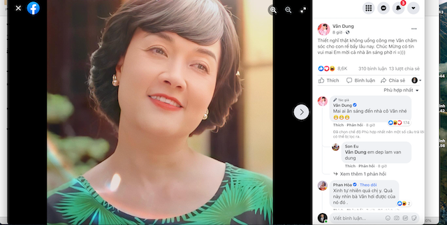 Ngoài ra, để cặp đôi kết duyên thành công, không thể quên công lao của bà Vân – mẹ Thục Anh luôn hỗ trợ "con rể" lên kế hoạch “cưa đổ” con gái. Chung vui với hạnh phúc của các con, nghệ sĩ Vân Dung trong vai bà Vân phấn khích chia sẻ: “Thiết nghĩ thật không uổng công mẹ Vân chăm sóc cho con rể bấy lâu nay. Có tin vui mai em mời cả nhà ăn sáng “phờ ri””.