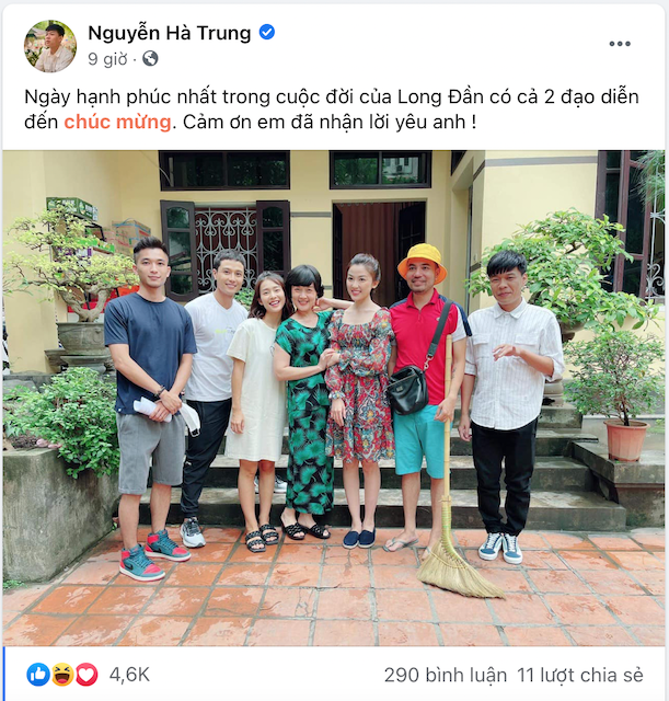 Cùng lúc đó, anh Long “đần” không quên gửi lời mật ngọt tặng bạn gái trên trang cá nhân: “Ngày hạnh phúc nhất trong cuộc đời của Long Đần có cả 2 đạo diễn đến chúc mừng. Cảm ơn em đã nhận lời yêu anh !”.