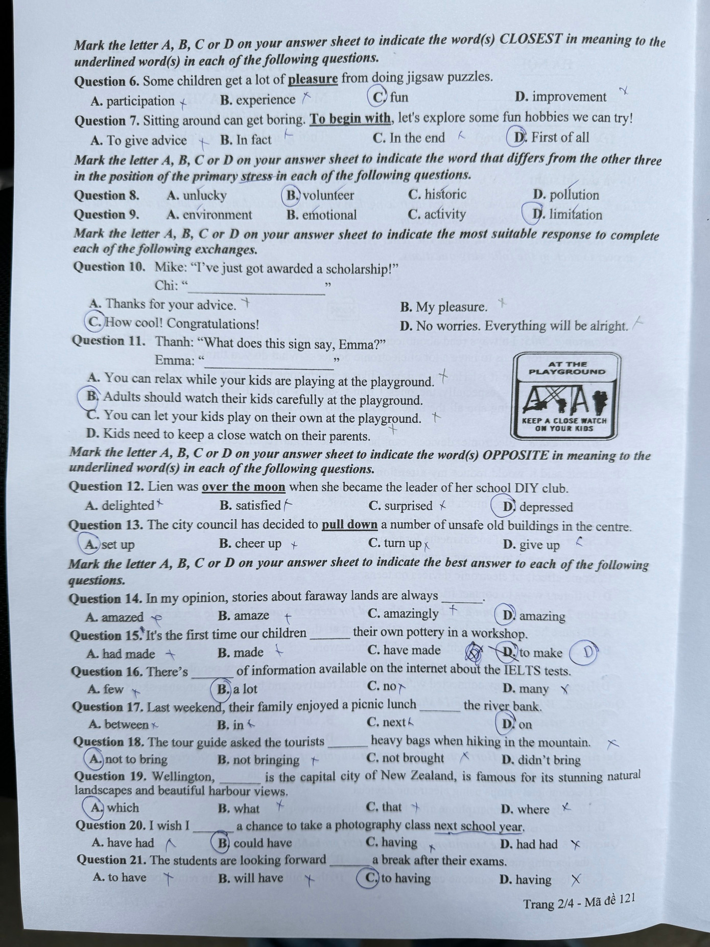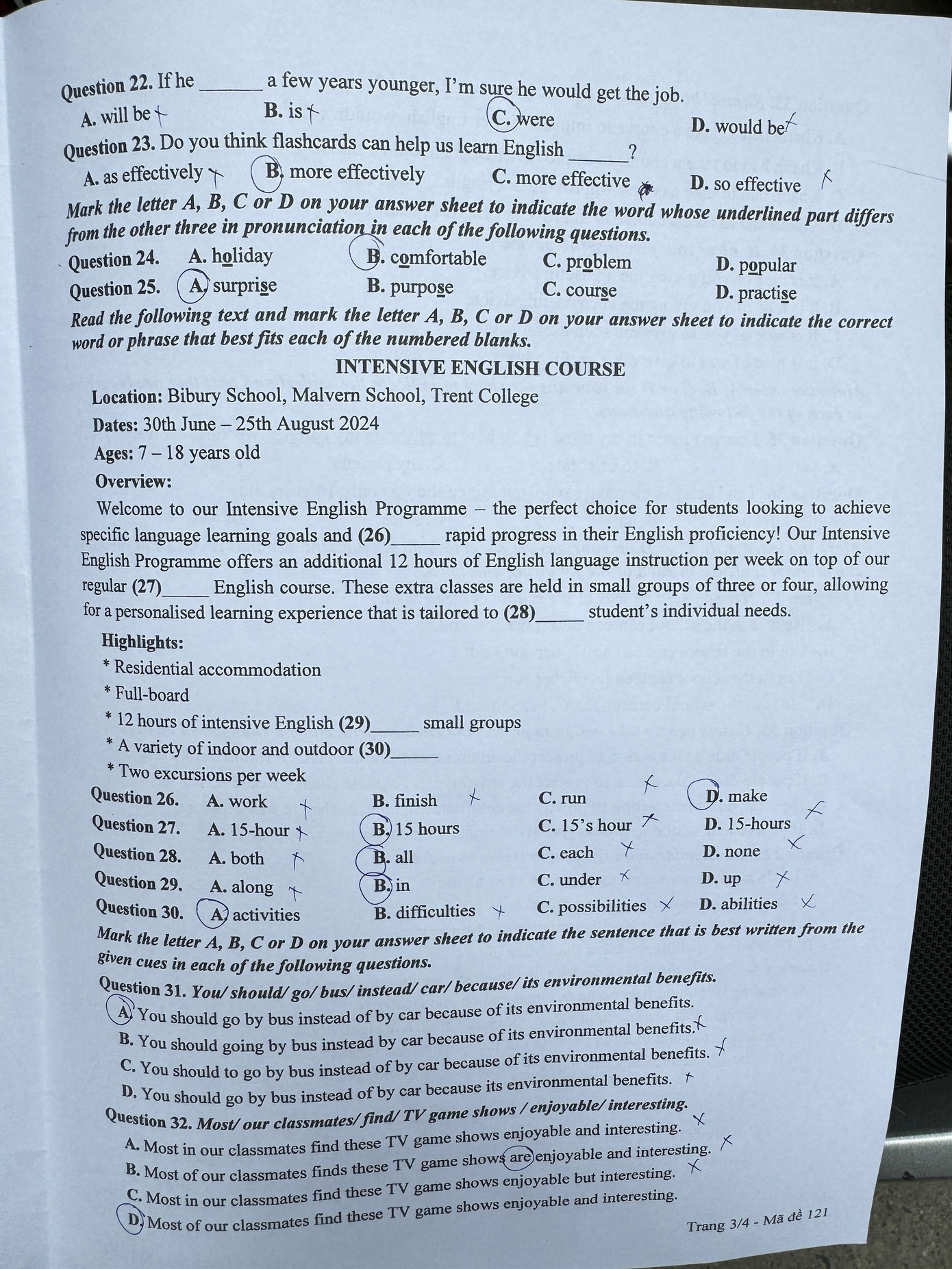 Môn Tiếng Anh - Mã đề: 121 - Tuyensinh247.com