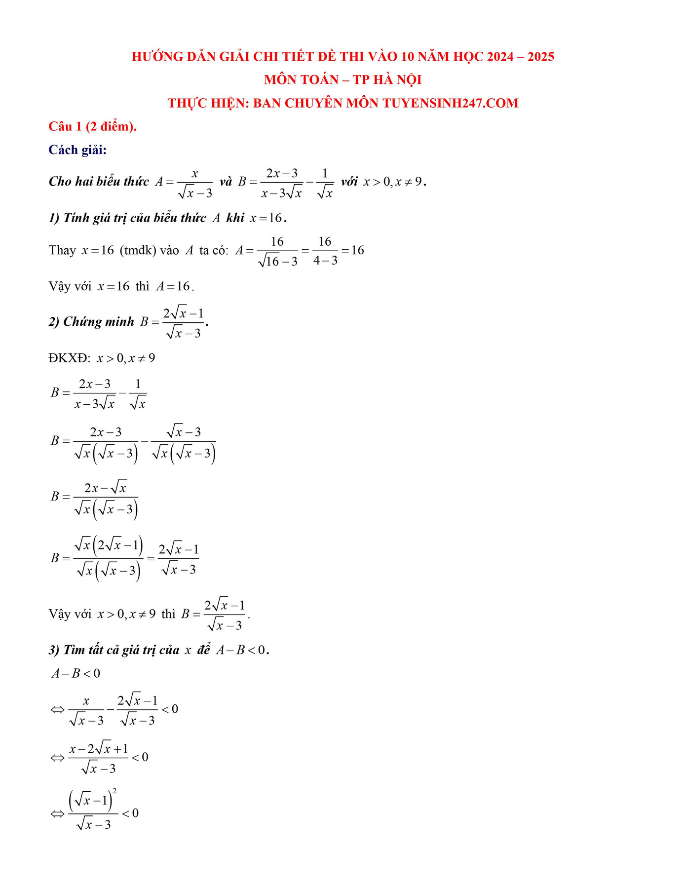Dưới đây là đề thi lớp 10 môn Toán của Hà Nội năm 2024:
