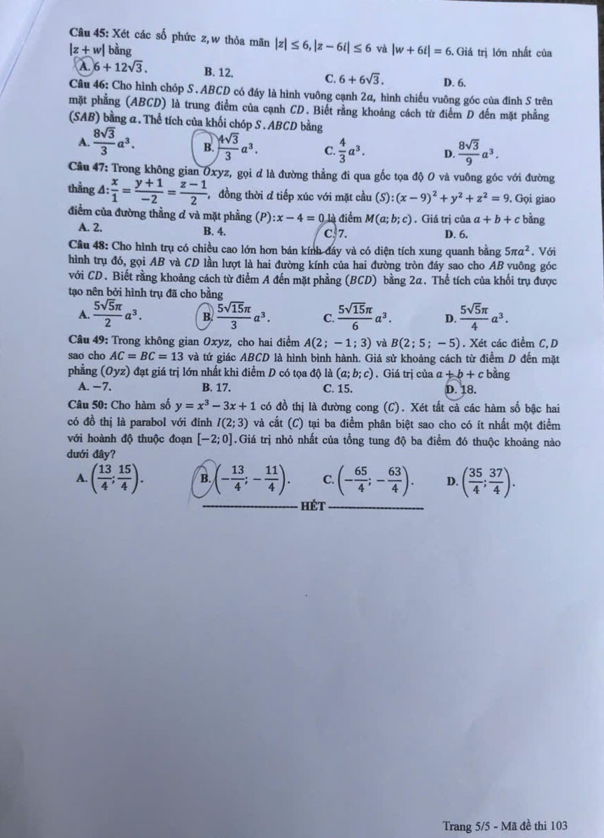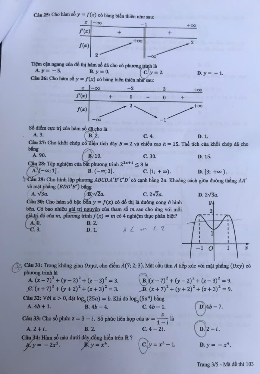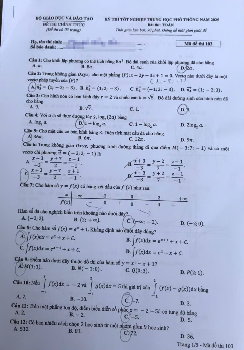 Cập nhật đề thi Toán tốt nghiệp THPT theo chương trình cũ