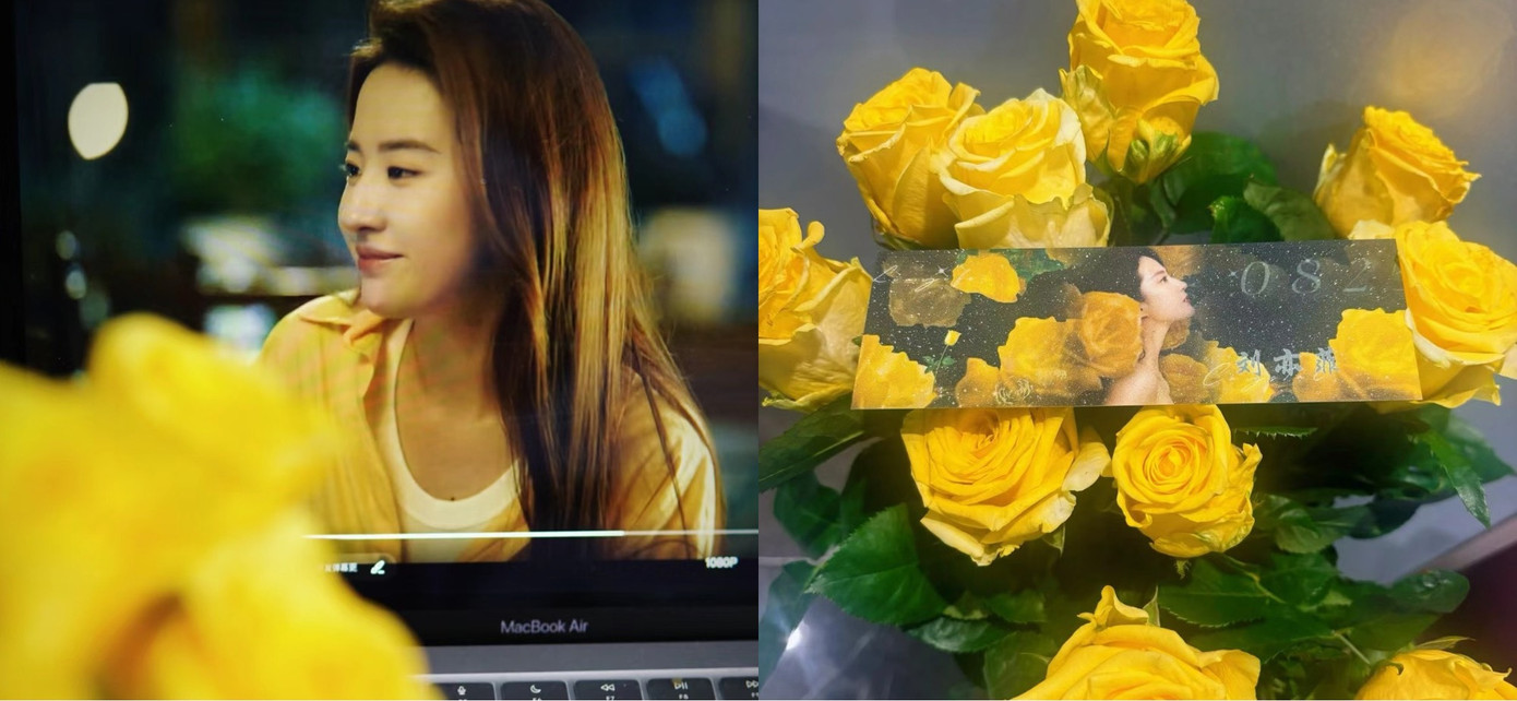 Nhan sắc của Lưu Diệc Phi trong Câu Chuyện Hoa Hồng cho ra đời hàng loạt khoảnh khắc gây sốt mạng xã hội. Sau bức ảnh ôm hoa ở Đi Đến Nơi Có Gió, "thần tiên tỷ tỷ" tiếp tục tạo trend với khung hình ngẩng đầu cười của Hoàng Diệc Mai.