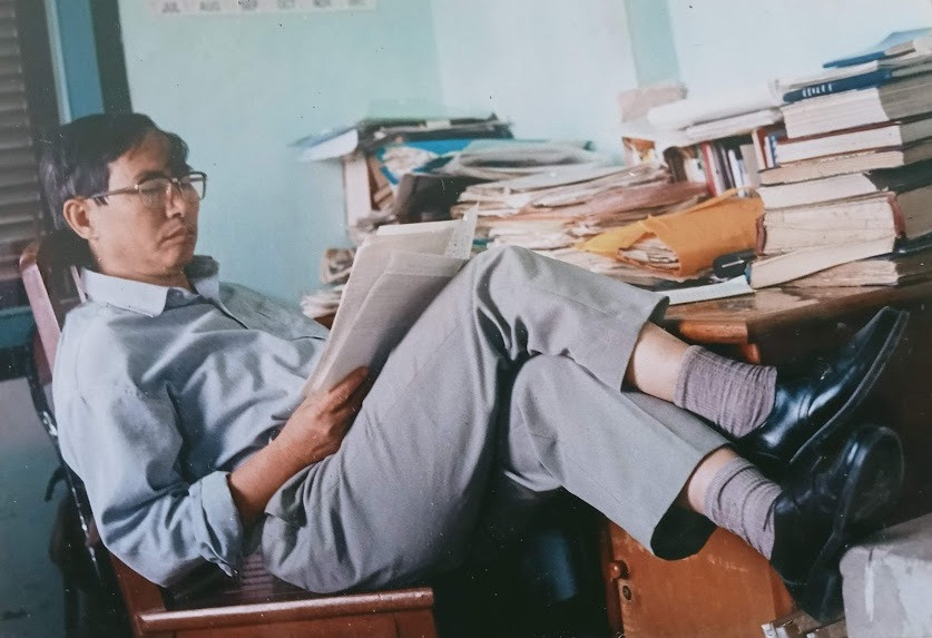| Nhà báo Nguyễn Như Mai và góc làm việc tại số 5 Hòa Mã chất đầy thư bạn đọc gửi về. |