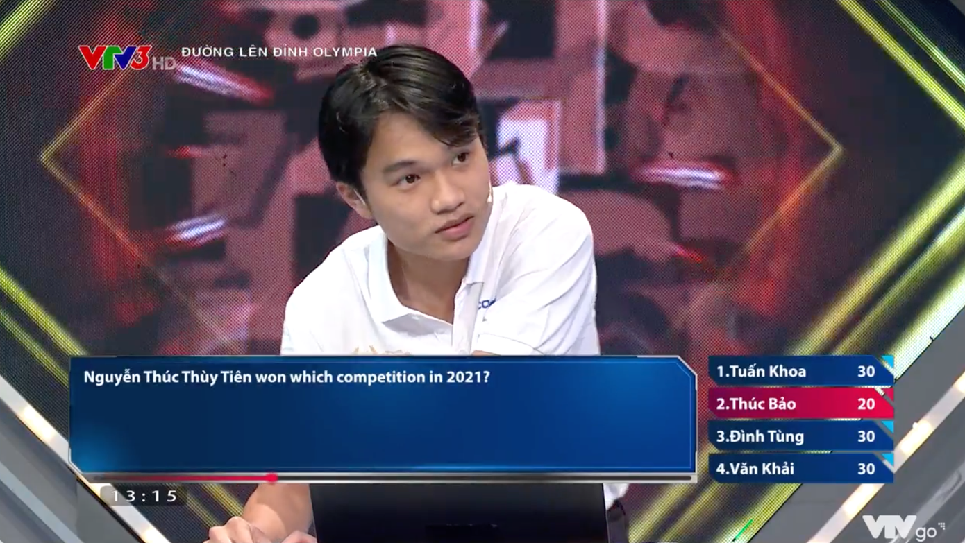 Đây được cho là một câu hỏi khá đơn giản bởi sự kiện Nguyễn Thúc Thùy Tiên đăng quang Hoa hậu Hòa bình Thế giới 2021 (Miss Grand International 2021) được cho là màn đăng quang lịch sử của đại diện Việt Nam tại đấu trường nhan sắc thế giới, thu hút sự quan tâm của hàng triệu người hâm mộ trong và ngoài nước. Có lẽ do áp lực về mặt thời gian cũng như tâm lý khi tham dự một cuộc thi trí tuệ có quy mô quốc gia nên nam thí sinh Thúc Bảo đã không đưa ra được đáp án chính xác.