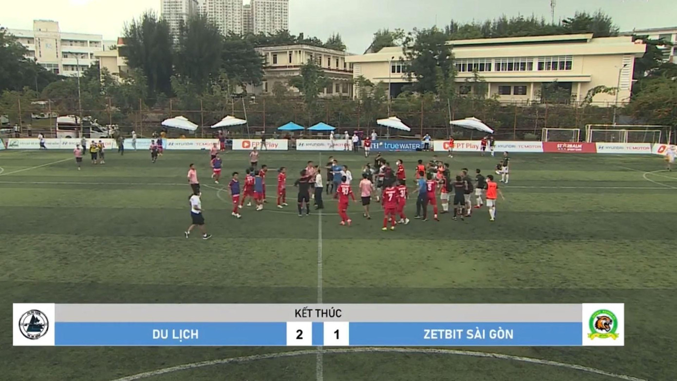 Cuối trận đấu, một cầu thủ bên phía Du Lịch sang bắt tay đối thủ thì bất ngờ bị Nguyễn Hồng Kông của Zetbit Sài Gòn tung hàng loạt cú đấm vào mặt. Đòn đánh mạnh và bất ngờ đã khiến cầu thủ FC Du Lịch ngay lập tức ngã ra sân. Trước đó, trợ lý HLV Đào Duy Vương (Zetbit) cũng đã tấn công một người bên phía FC Du Lịch và bị cảnh sát cơ động áp giải ra khỏi sân.